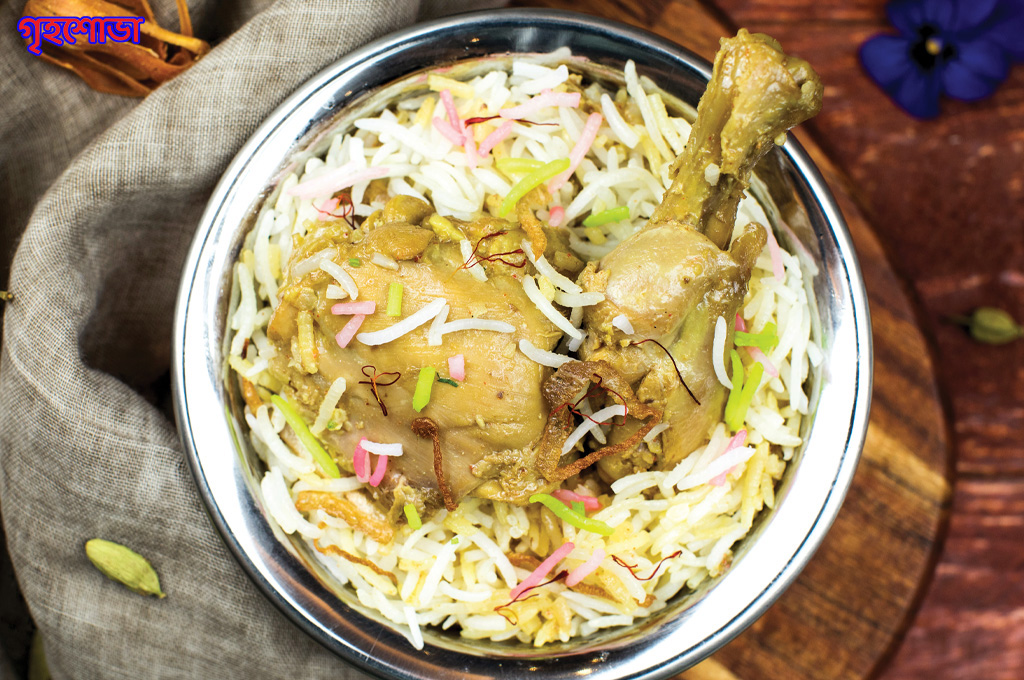 উপকরণ: ১ কেজি বাসমতী চাল, ১১/২ কেজি চিকেন (হাড় সমেত), ২০ গ্রাম আদা-রসুন পেস্ট, ১০ গ্রাম কাঁচালংকা, ৪-টে লবঙ্গ, ৬০ গ্রাম কাঁচালংকা বাটা, ১ গ্রাম দারচিনি, ৫ গ্রাম শাহ জিরা, ১০ গ্রাম পুদিনা ও ধনেপাতা, ১০০ গ্রাম ভাজা পেঁয়াজ, ৫০ মিলি ঘি, ৮০ মিলি রিফাইন্ড তেল, ২৫০ গ্রাম দই, নুন স্বাদমতো।