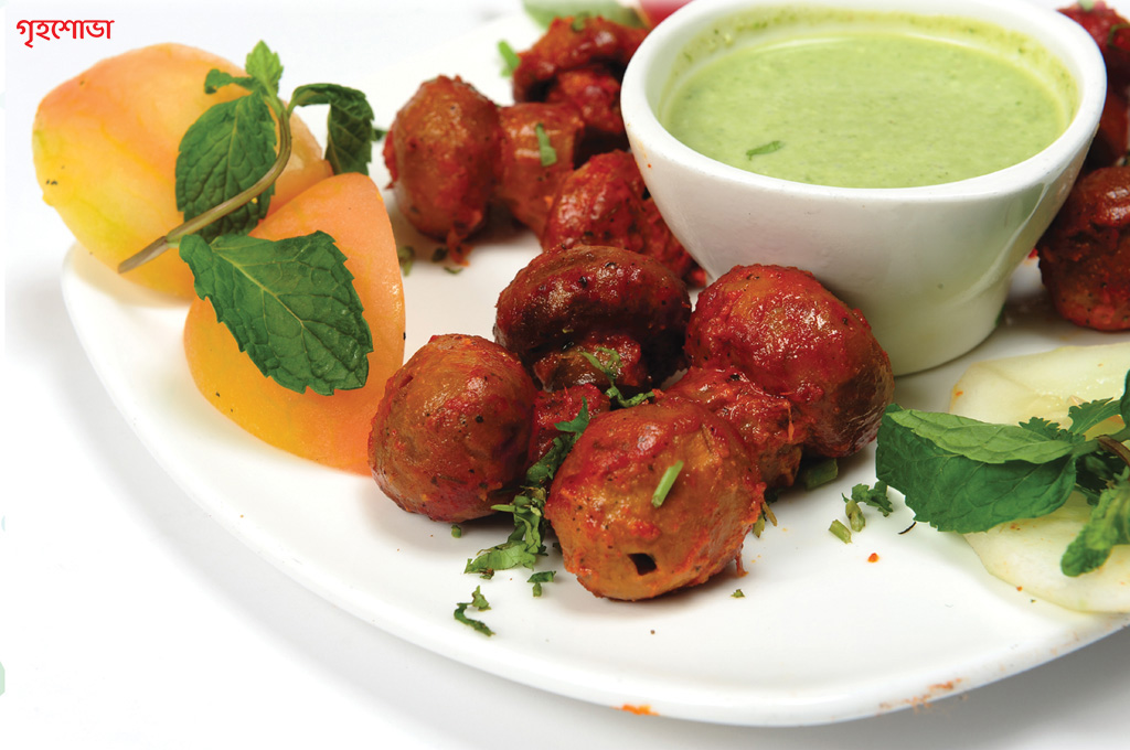 উপকরণ : ২৫০ গ্রাম মাশরুম, ৪০ গ্রাম জল ঝরানো দই, ১/২ বড়ো চামচ খোলায় নাড়াচাড়া করা বেসন, ৫ গ্রাম সরষের তেল, ১/২ ছোটো চামচ রসুনবাটা, ১/২ ছোটো চামচ আদাবাটা, ৫ মিলিগ্রাম লেবুর রস, ১/২ ছোটো চামচ দেখি মির্চ, ১/২ ছোটো চামচ গরমমশলাগুঁড়ো, ১/২ ছোটো চামচ ‘সুমন' ব্র্যান্ড-এর জিরেগুঁড়ো, ১/২ ছোটো চামচ জোয়ান, ১/২ ছোটো চামচ গোলমরিচগুঁড়ো, ১/২ ছোটো চামচ কসৌরি মেথি, নুন স্বাদমতো।