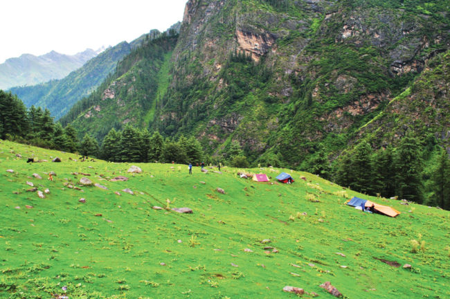 ঘন জঙ্গল শেষ হয়ে গেলেও রডোডেনড্রন, ফার, সিলভার বার্চ গাছের বিচ্ছিন্ন জঙ্গল এখনও দেখা যাচ্ছে। ক্রমে ক্রমে বৃক্ষরাজি শেষ হয়ে দেখা যেতে শুরু করল জুনিপারের ঝোপ। পার্বতী উপত্যকা ধীরে ধীরে প্রশস্ত হয়ে এল। বৃষ্টি থেমে গেছে। আমাদের আনন্দ উচ্ছ্বাস, কলধ্বনি পার্বতী নদীর জলশব্দের সঙ্গে একাকার হয়ে যাচ্ছে। এ পথের খুঁটিনাটি সর্দার নিষ্ঠুর নখদর্পণে। এই পথের আমাদের প্রকৃত গাইড। পার্বতীর বাম তীর ধরে এতক্ষণ হাঁটছিলাম আমরা। নিম্বু বলল কিছু সময় পরে ডান তীরে চলে যাব। সামনেই একটা কাঠের ব্রিজ রয়েছে।