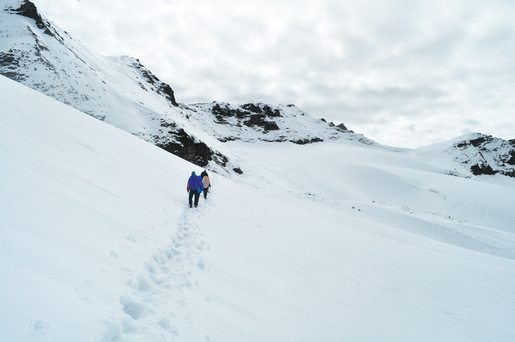 খাড়া বরফের দেয়ালের মাঝখানের সরু গলির কাছ থেকে ডানদিকে বাঁক নিলাম। সামনেই বিস্তৃত তুষারের অনন্ত শয্যা। আশেপাশে বরফের ফাটল আছে। কিছু দেখা যাচ্ছে, বাকিটা বরফের অন্তরালে সন্তর্পণে ক্ষুধার্থ শ্বাপদের মতো অপেক্ষা করে আছে। মূর্খ লোকেদের কিছু সুবিধা আছে। কিছুই জানি না, তাই ভয় পাওয়ার কিছু নেই। সামনে থাকা নিম্বুর পদচিহ্নতে পা মিলিয়ে এগিয়ে যাও।